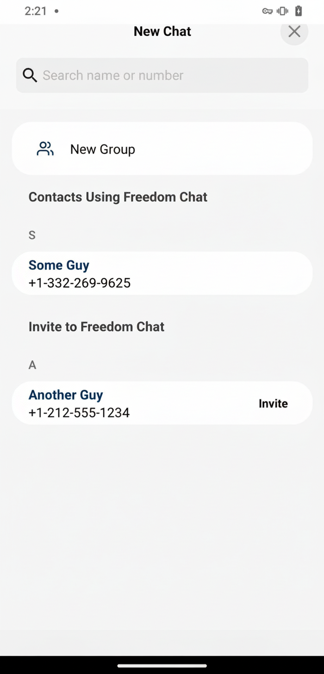 The vulnerability they’re talking about was presented in a paper by researchers at the University of Vienna. The paper is interesting and you should go read it, but to summarize, WhatsApp failed to rate limit the API that eats up every phone number in your contacts and checks whether they also use WhatsApp or not. Researchers were thus able to test nearly every possible phone number in the world, and end up with a dump of every WhatsApp user’s phone number, along with some other metadata. It’s interesting that Freedom Chat isn’t vulnerable to this, because they have the same contact discovery feature WhatsApp does, with the app offering you to either start a chat or invite each of your contacts depending on whether they already have an account: