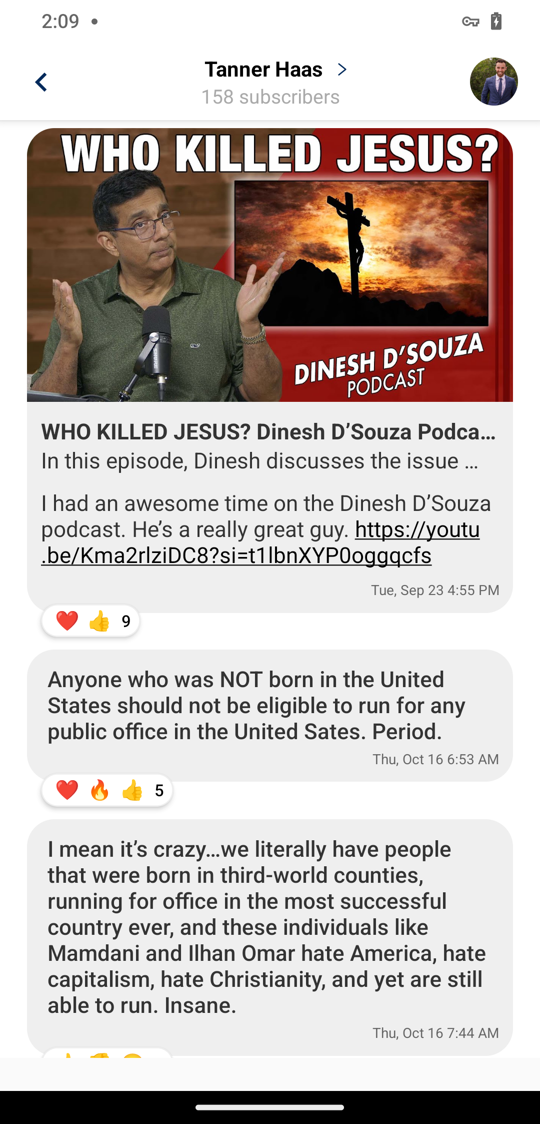 We’re also suggested a handful of other channels to join, including that of Tanner Haas and some people who are apparently conservative influencers. Tanner mostly seems to use his to post fascinating political takes: